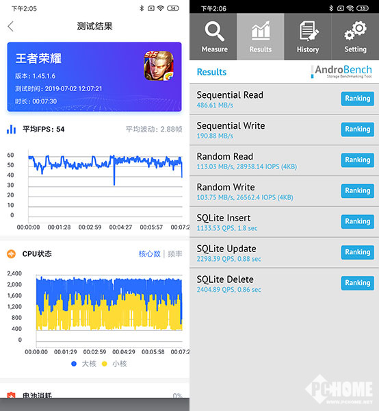 不过通过实际的测试来看,小米9CC显然还有很大的优化空间。在《王者荣耀》游戏中,小米CC9在画质全开的情况下,游戏运行是有比较明显的帧数波动情况的,这种帧数波动倒是在安全线之上,游戏中体感上是不会感觉到卡顿的情况,眼睛的感觉是十分流畅的。在存储方面的测速上,小米CC9也没有展现出UFS 2.1闪存应有的速度,与其它UFS 2.1手机相比,有着很大的速度差距。