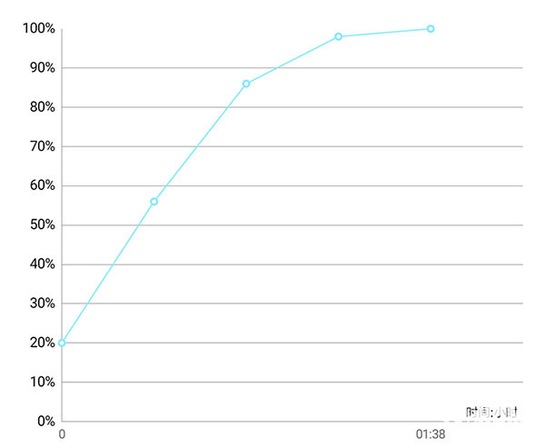 小米CC9支持QC4快充,标配18W快充充电器,实测从20%的低电量充满至100%,总共耗时1小时38分钟。时间上是标准的充电表现,对于一款年轻化的手机来说是可以接受的。