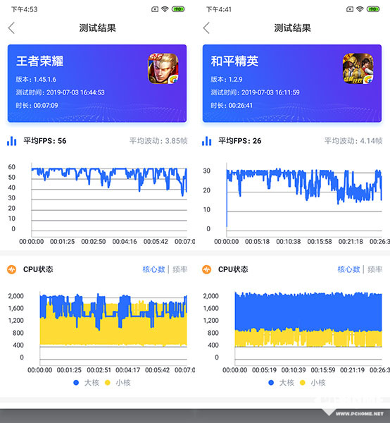 实际的游戏表现上,小米CC9e是具备在高画质之下使用的能力,从两款流行游戏的表现来看,该机不能稳定的保持在帧数上限,有较为明显的波动情况。《王者荣耀》的表现相对较好,平均帧数足有56帧,帧数的波动并不会下降到30帧的安全线之下,游戏全程的流畅感很不错。《和平精英》游戏中,小米CC9e的表现较为吃力了,但体感上的卡顿却是感觉不到的。