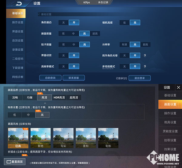 测试游戏以及画质选项
