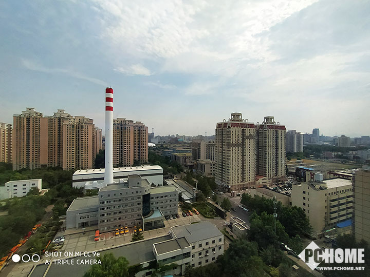 小米CC9e会自动识别场景并提示用户使用超广角模式拍照,超广角模式能够获得超大的视角范围,能够将建筑尽收眼底。同时其具有AI畸变校正技术,能够自动修正超广角拍照边缘所造成的畸变情况,这点从拍照样张中能够明显的表现出来。
