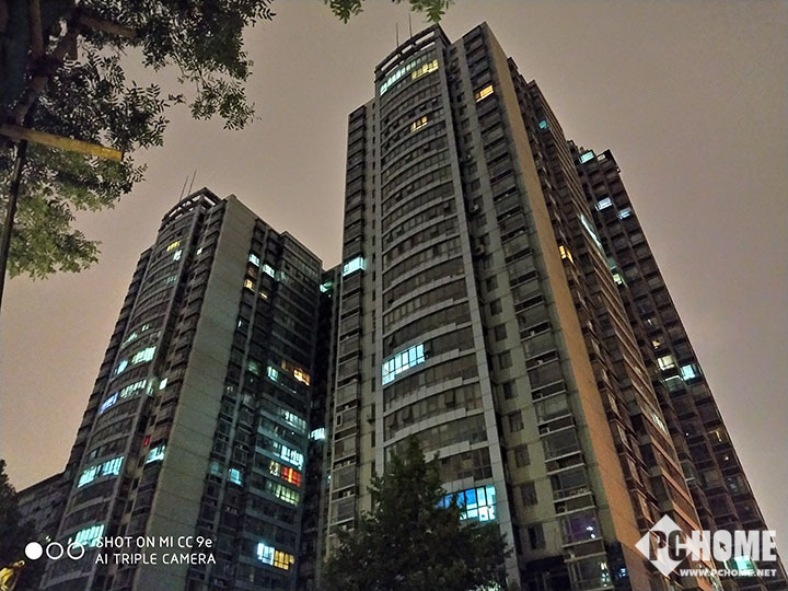 夜景的拍照上,小米CC9e具备专门的夜景模式,它支持手持下的长曝光拍照,手持拍照时间大概是4秒的时间,之后通过合成呈现最终的照片。其优势是可以大幅度提升画面亮度,即使是比较黑暗的环境也能够有着相当高的亮度表现力。与自动模式相比,夜景模式对高光的压制更好,同时噪点控制也更佳,让画面表现会更为干净。至于长曝光所带来的成片率问题,完全不需要我们担心,该机出色的AI能力与拍照算法支持,足以保证长曝光下的成功拍照。