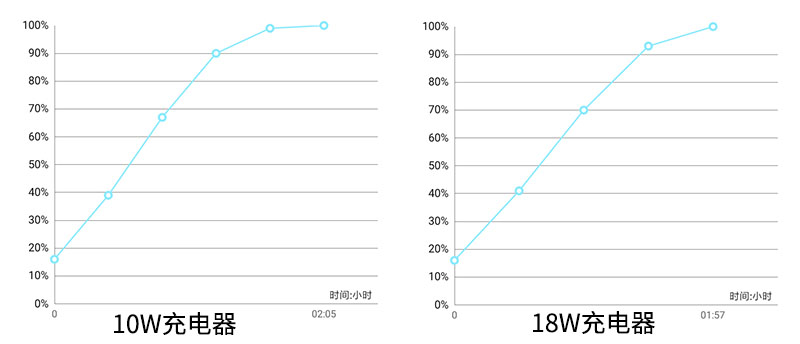 小米CC9e的标配了10W充电器,使用这款充电器充电耗时较长,从16%的低电量充满至100%,总共耗时2小时5分钟。该机并不支持更高规格的快充,我们尝试使用小米的18W快充充电器进行测试,相同的充电环境下,充电时长为1小时57分钟,充电速度上略有提升,但没有本质性的区别。