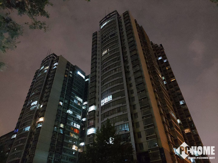 在夜景的拍照上,三星Galaxy A80的表现与Galaxy S10比较雷瑟,相机的调校是首先保证亮度,并对高光进行压制。从照片效果来看,场景十分明亮,远近都十分清晰,并且在天空中的云层都进行了还原。