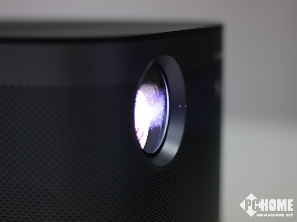 极米H3同样采用了金属网栅的外壳包裹,这样也更有助于机身内外的空气流通,提升散热效率。在机身的正面我们可以看到除了投影摄像头之外,在右侧位置还标记的有“harman/kardon”的音响logo。