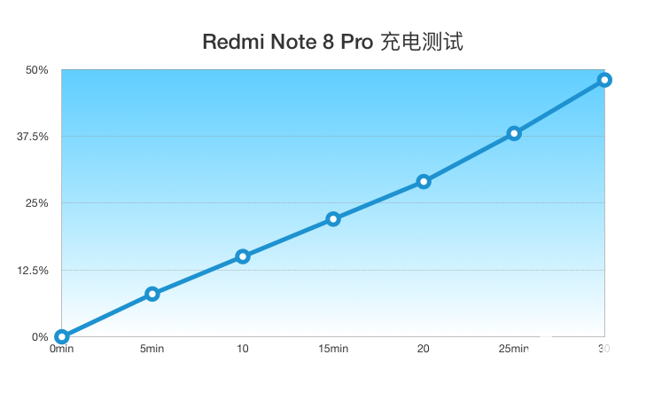 可以看到,30分钟内,Redmi Note 8 Pro从0充到了42%,介于其这么大的电池,这一充电速度表现不错。