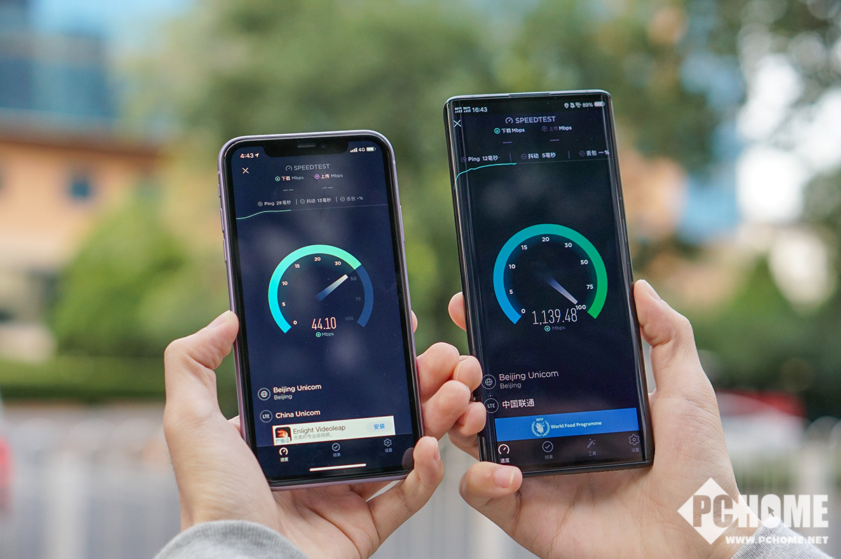 我们在北三环的同一地点测试iPhone11和vivo NEX 3 5G的网络连接速度。