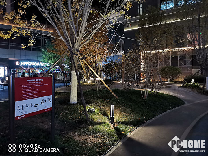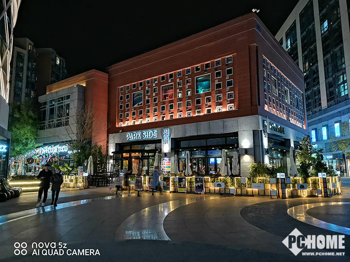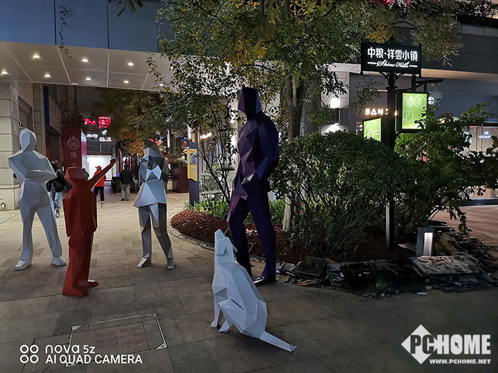 而在夜拍方面,华为nova 5z的表现可圈可点,在光线可以保证的情况下,直接通过像素四合一技术,拍出来的照片细节到位、光线充足、噪点控制不错。如果系统检测到光线不够明亮,就会自动开启手持超级夜景,此时经过几秒合成后,地面反光、灯箱等,一些直出不容易体现出来的细节,就都能看到了。
