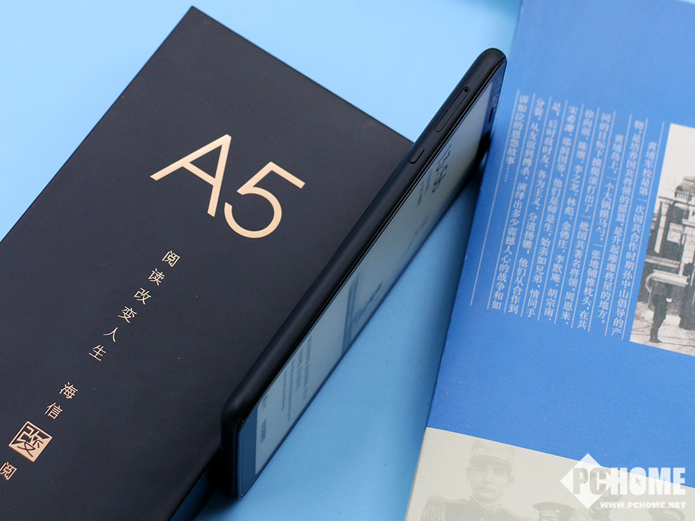 海信阅读手机A5采用了单水墨屏设计,该机采用5.84英寸水墨屏,内置2048级AI智能调光柔光灯,在暗光环境下使用,蓝光能够比传统屏幕减少95%,是从硬件层面上进行的护眼效果。海信阅读手机A5在优质内容上,聚合了六大主流阅读平台,为用户提供了随身的掌上图书馆。