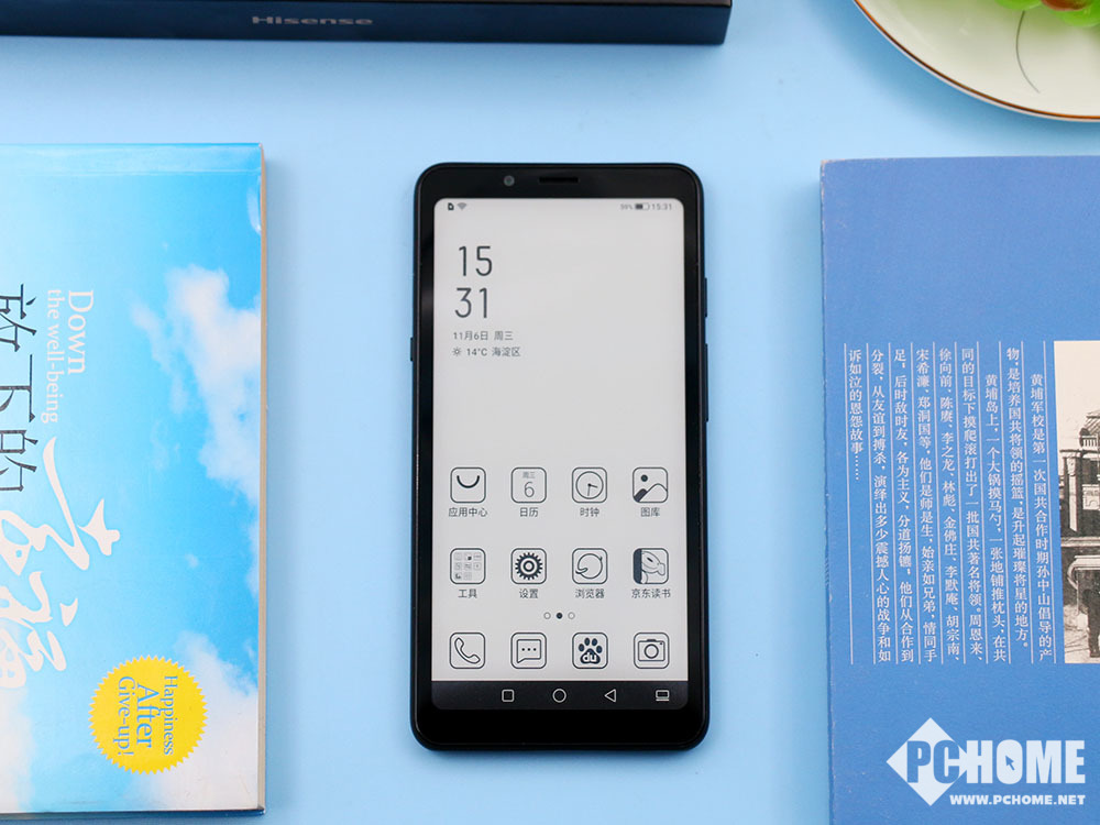 海信阅读手机A5采用了单水墨屏设计,该机采用5.84英寸水墨屏,内置2048级AI智能调光柔光灯,在暗光环境下使用,蓝光能够比传统屏幕减少95%,是从硬件层面上进行的护眼效果。海信阅读手机A5在优质内容上,聚合了六大主流阅读平台,为用户提供了随身的掌上图书馆。