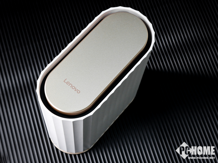 联想个人云存储的外形比较有特点,这款产品没有采用常规的矩形箱体,而是采用了类似“田径场”的形状,两端的半圆曲线与中部的直线元素形成碰撞,带来别样的视觉感受。整个侧面为白色,表面采用波浪设计,犀利的棱线,乍一看会让人联想到古罗马建筑中的石柱。