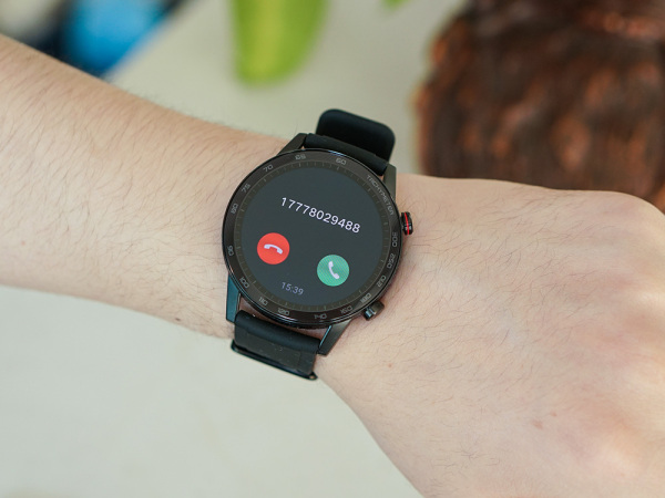 实测荣耀MagicWatch 2在距离手机隔了两道墙的房间内接听电话依旧清晰,使用上下按键还能在接听电话期间调节音量。笔者对这一功能的需求还是比较多的,尤其是在健身房时,手机通常放在柜子里,以前佩戴手环时,只能看到来电提醒,不能直接接听,还得跑回到寄存处。自从有了荣耀MagicWatch 2,无论是在跑步还是在撸铁,都能直接接听,十分便捷。更厉害的是荣耀MagicWatch 2还支持50米防水,我们甚至能在游泳时随时接听电话。