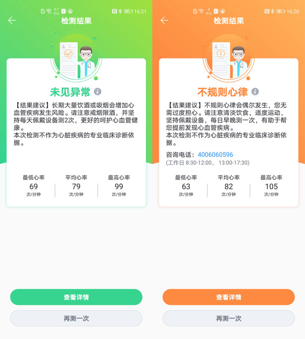 心脏健康研究APP提供主动测量与自动测量两种模式,适时捕捉异常早搏心跳,看护心脏健康。基于华为Hiresearch云统计分析数据,联合301医院MAFA系统,为疑似早搏高风险用户提供闭环管理服务,被提醒的高危用户可以在APP内预约就近的心脏专家医生。