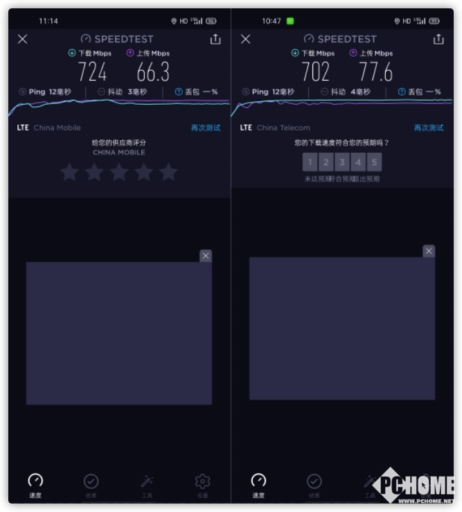 经测试,在中国移动以及中国电信的5G网络下,OPPO Reno3 Pro的下行速度都超过了700Mbps,这一速度基本上达到了当地运营商所支持的最高值。
