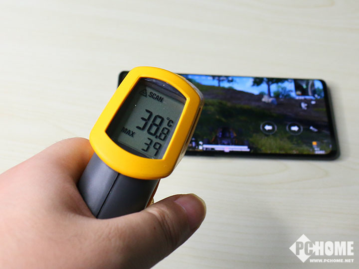 Reno3 Pro在机身内部配有VC液冷导热凝胶系统,处理器所产生的热量会通过导热凝胶快速传递至VC液冷系统中进行快速导热散热;身内的多层石墨片,对各个主要热点进行快速散热。我们对此也实际进行了测试,在开启5G网络连接的情况下进行游戏《和平精英》,20分钟的游戏时间后,手机表面处理器区域的最高温度在39度左右。