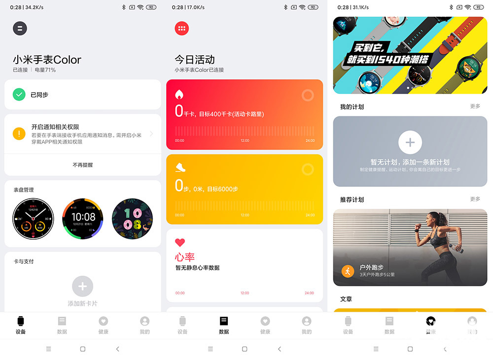 对于喜欢运动的用户来说,小米手表color目前支持8种运动模式,其中包含户外跑步、室内跑步、户外骑行、室内骑行、自由训练、健走、登山和越野。手表本身还支持5ATM生活防水,也可应对泳池游泳、开放水域游泳这样的运动场景,但不适用于温泉、桑拿、跳水、潜水等对防水要求更高的场景。