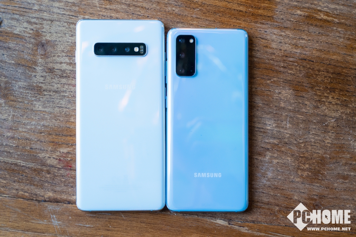 在机身背部的设计上,三星延续了Galaxy S10系列中的那种简约曲面设计,不过摄像头区域变成了矩阵式。配色上Galaxy S20提供遐想灰、浮氧蓝、柔雾粉三色;Galaxy S20+提供幻游黑、遐想灰、浮氧蓝三色;Galaxy S20 Ultra提供幻游黑和遐想灰两种配色。Galaxy S20与Galaxy S20+的重量为164克/187克,保持了一如既往的纤薄性。Galaxy S20 Ultra的重量高达222克。