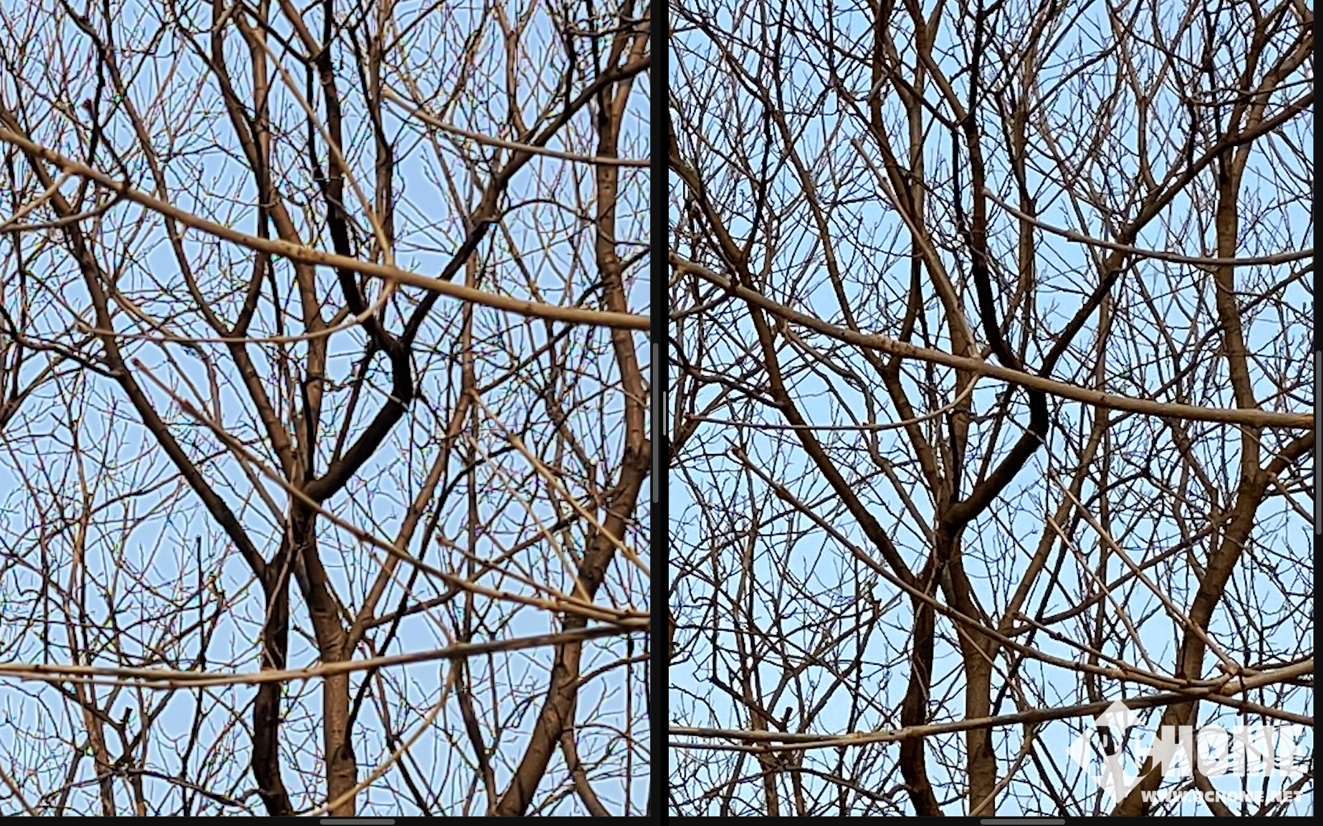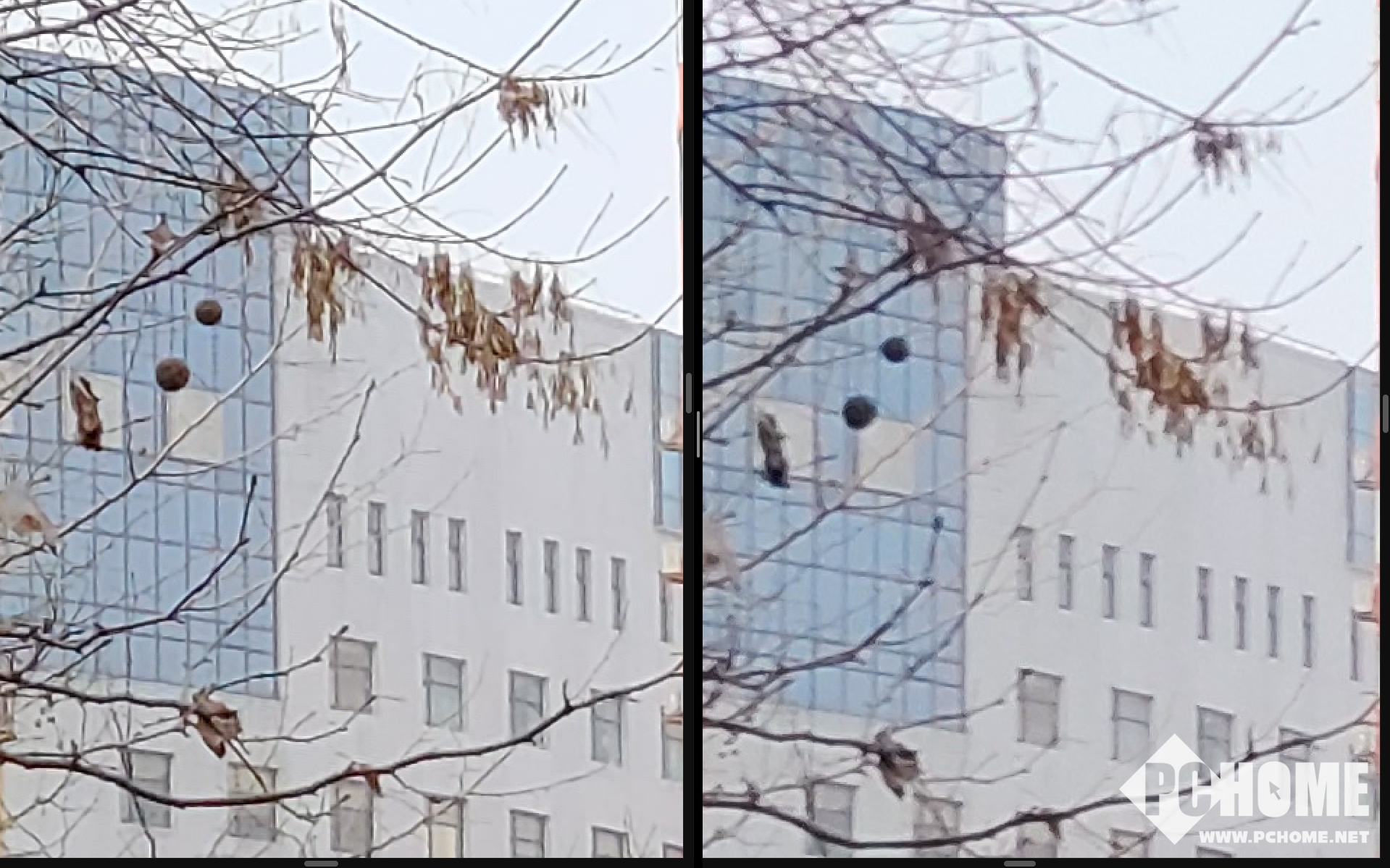 切换成1200万像素模式与iPhone 11 Pro相比,S20 Ultra的样片放大后的画面解析力与iPhone 11 Pro相差不大,在大场景下S20 Ultra照片锐度更高,画面细节保留的也要比iPhone 11 Pro略好。但是遇到树枝这种繁杂的场景,反而iPhone 11 Pro要好一些,二者难分伯仲。