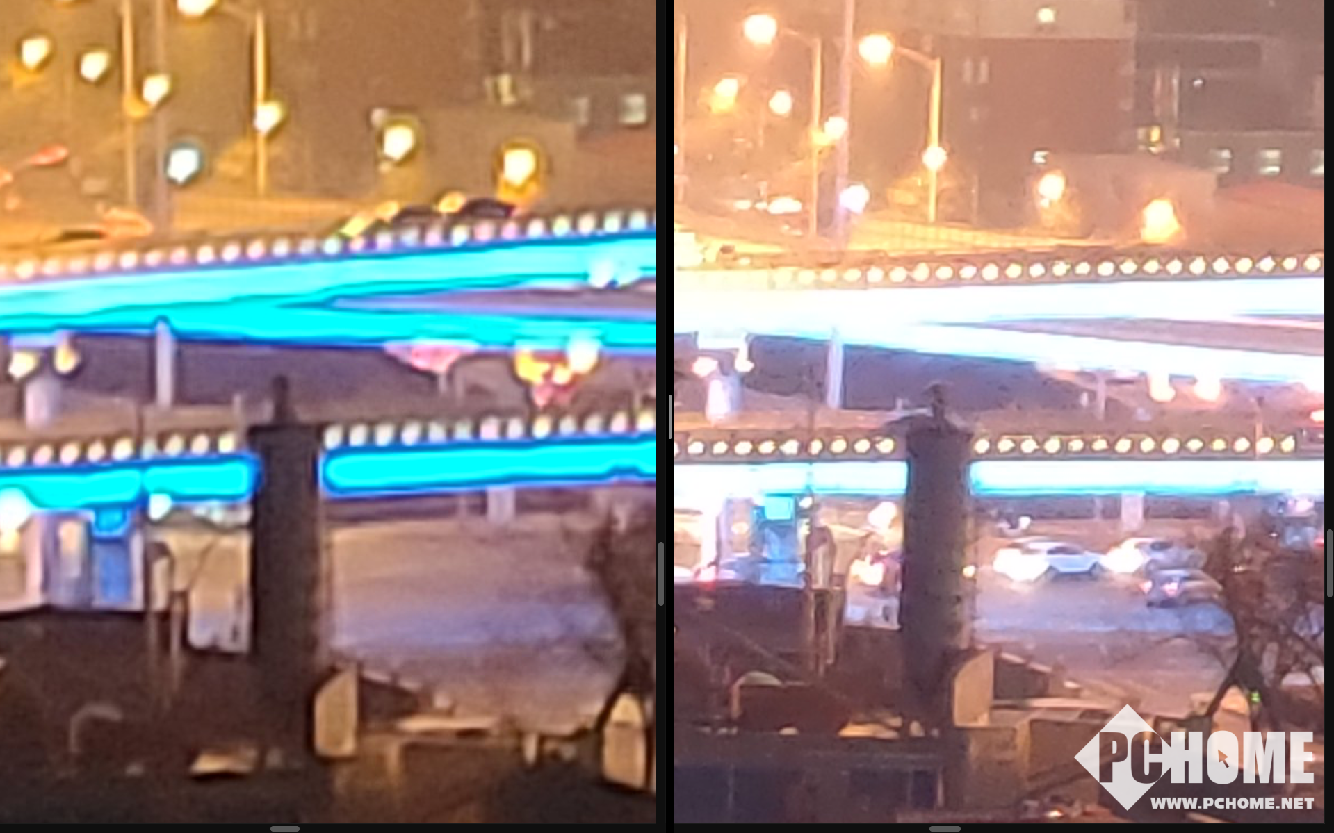到了夜晚,除了考验防抖能力之外,也对测光提出了更高的要求。S20 Ultra和小米10 Pro在夜晚复杂光线环境下差距比较明显,S20 Ultra的优势在于测光比较准确,大桥上的灯光色彩显示精准,而小米10 Pro则细节保留较多,不论是塔边缘的梯子还是树木的纹理都可以看得清楚,不过桥上的灯带则明显过曝,从综合观感上来说,还是三星更胜一筹。