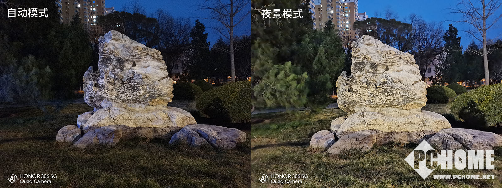 荣耀30S的夜景拍照同样表现很好,甚至可以说是同价位之中最好的夜景表现。它有着全新升级的大底,进光量得到保障,即使自动模式下也有着不错的亮度表现。在开启夜景模式后,画面整体亮度会提升明显,暗部区域的清晰度会得到明显改善,高光区域中也压得不错。整个画面十分纯净,降噪效果很好。
