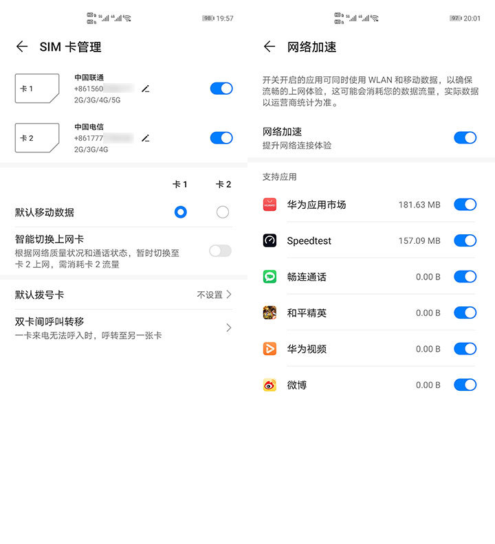 此外,华为P40全系列还支持5G+4G同时在线以及网络加速。5G+4G同时在线就是在通话时,依旧可以保证手机的网络畅通。