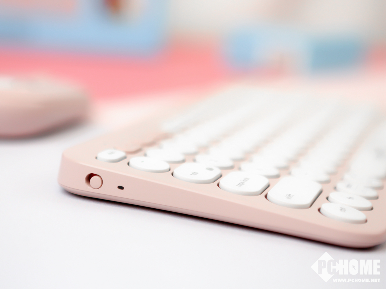 此次来到我们评测室的是罗技LINE FRIENDS可妮兔联名款,包装方面采用了蓝色元素,与粉色的键盘鼠标形成撞色,非常漂亮。Pebble鼠标使用了马卡龙风的清新粉色,底部绘有可妮兔,画风超可爱。鼠标支持蓝牙与2.4GHz无线连接。最多支持与两台设备连接,超安静的设计在办公室使用也毫无压力。