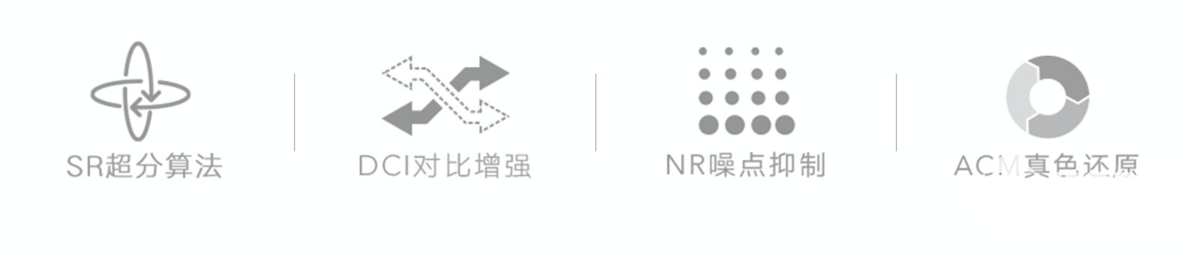 这枚专门用于画质提升的芯片可以进行包括SR/NR提升空间清晰度技术、DCI/LD提升对比度技术以及ACM调色技术在内的七大画质提升。