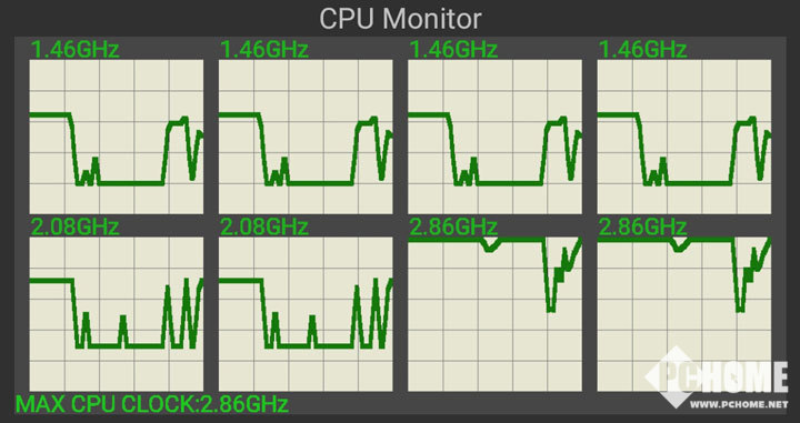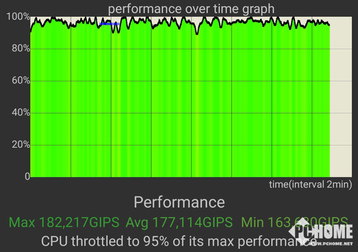 为了测试荣耀Play4 Pro的性能稳定性表现,我们使用CPU Throttling Test进行了CPU拷机,看一看荣耀Play4 Pro的极限算力表现。在15分钟的测试过程中,麒麟990的CPU可以发挥出至少95%的算力,并冲到了最高的2.86GHz主频。测试过程中没有发生降频现象,证明PC级液冷散热系统完全能够保证荣耀Play4 Pro性能的持续稳定输出。