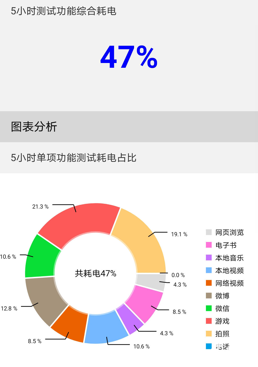 测试全程开启高分辨率、5G网络并连接Wi-Fi,屏幕亮度、音量均为50%。实际耗电47%,剩余电量53%。整体续航水平表现非常优秀,