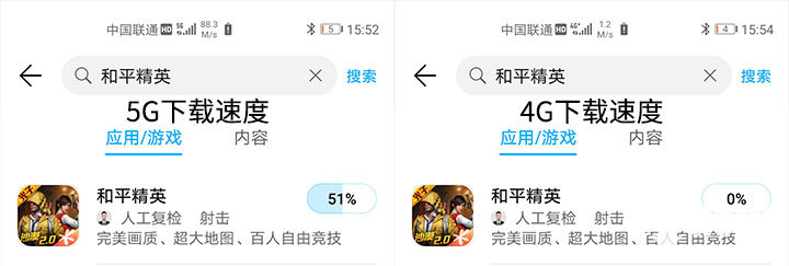 最后,我们分别使用5G网络和4G网络在应用商店下载和平精英,打开网速监控,可以看到,5G网络下载的速度约为88.3MB/S,4G网络则为1.2MB/S。