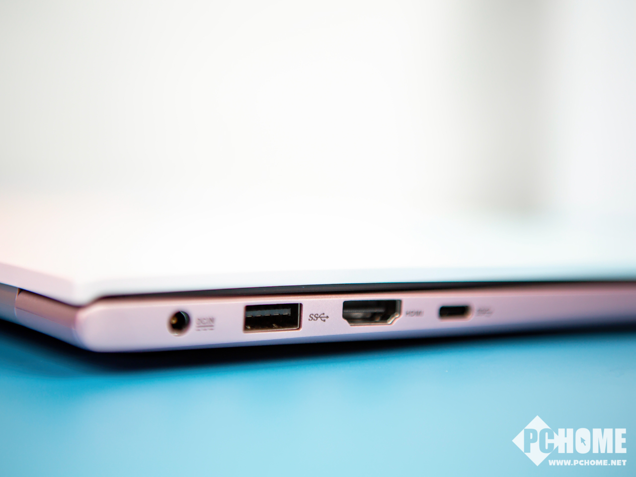 扩展接口方面,机身右侧配备了读卡器、耳机麦克风和USB 2.0接口,机身左侧依次为电源插孔、USB3.0、HDMI以及USB-C接口。在机身如此轻薄的情况下,还能配备两个标准USB接口及全尺寸HDMI接口,在扩展上还是能提供不少便利的。