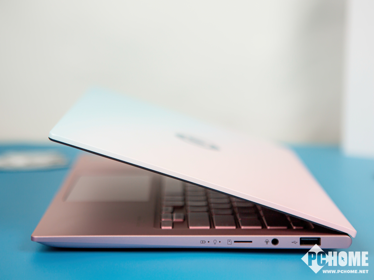 外观设计方面,adolbook13 2020迷幻海洋绝对是一款看一眼就能让人产生兴趣的机型。不同于常见的银色或灰色全金属机身,adolbook13 2020“迷幻海洋”的A面呈现出了一种柔美的粉蓝渐变色。