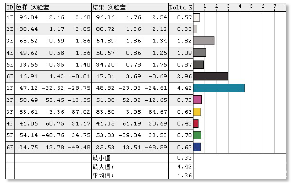 色彩准确度方面,经过实际测试,这块显示屏的表现也是蛮不错的,实测最大偏差值为4.42(青色),最小值0.33(浅灰),平均色彩偏差仅为1.26。
