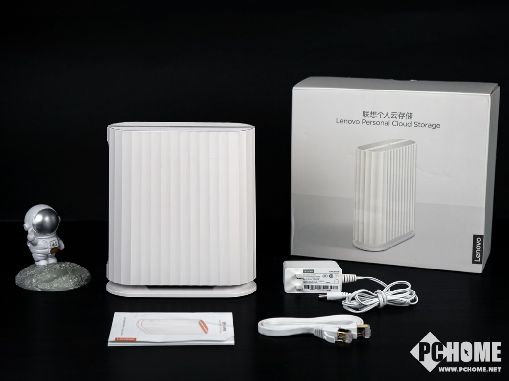 联想个人云存储A1采用简约的方形纸盒包装,内含A1主机、电源适配器、网线以及配置说明书。