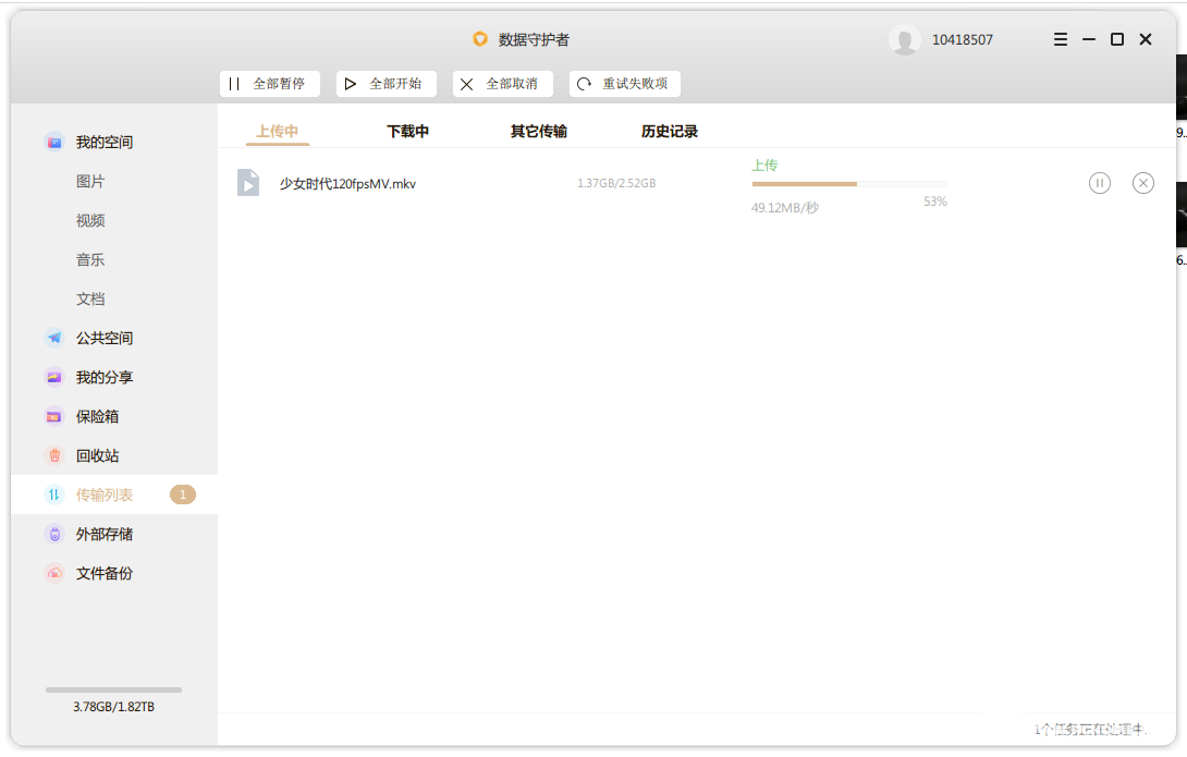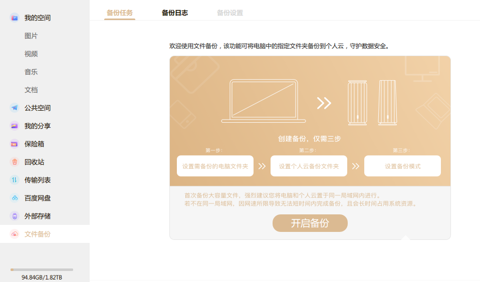 至于PC客户端的使用体验,以Windows客户端为例,主页分为我的空间、公共空间、回收站、传输列表、外部存储等,逻辑还是比较清晰的,基本没有学习成本。