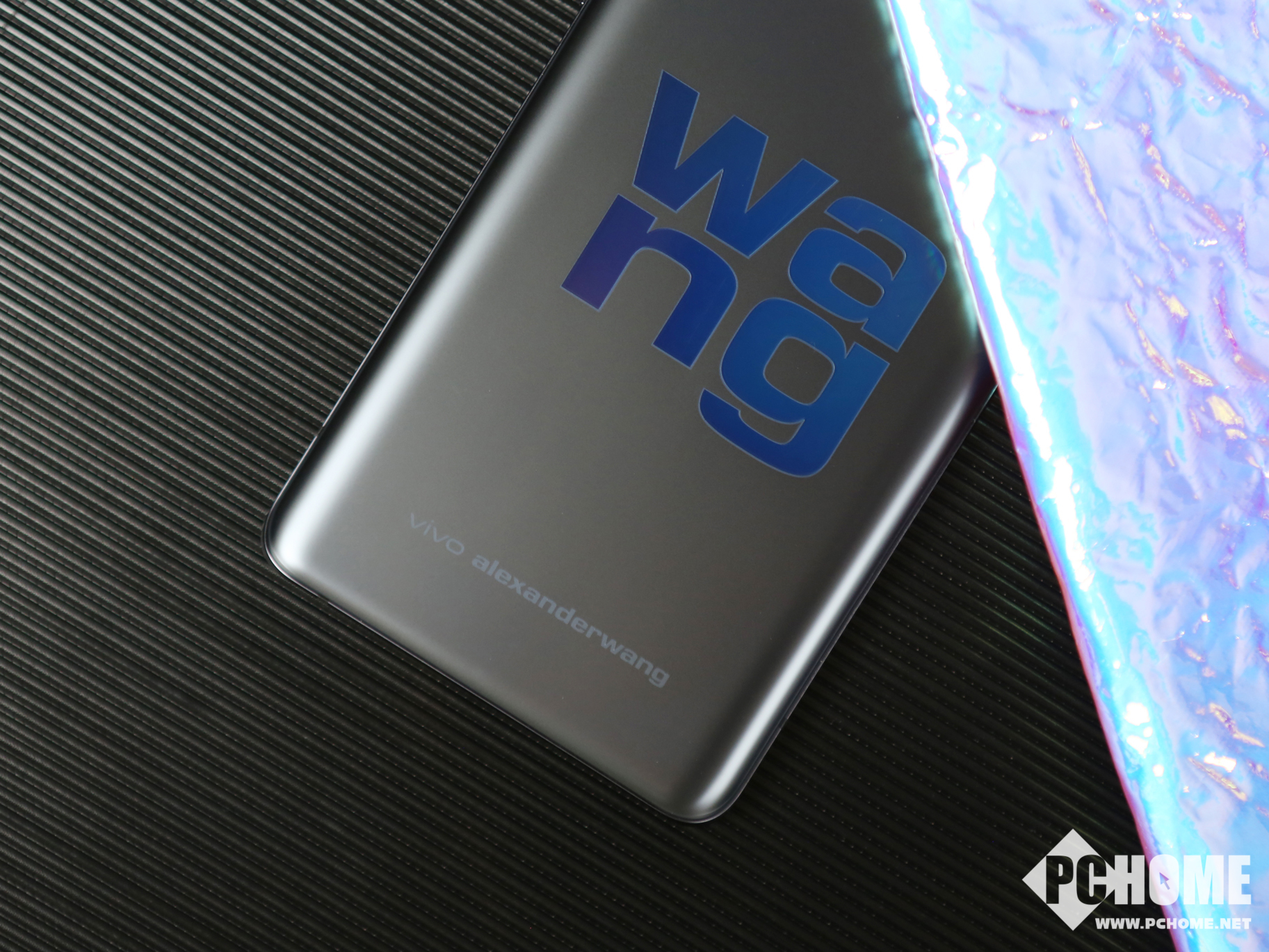 vivo X50 Pro+ alexanderwang限定版采用了“self-Certified,self-Defind”的设计理念,鼓励消费者勇敢做真实的自己,定义属于自己的时尚。机身整体采用了碳灰色作为基底,背部有alexanderwang个人logo「wang」,并且在这枚logo上,vivo采用了幻彩全息纹理定制,通过不同角度光线的变化即可绽放独一无二的色彩,配合高质感的深锖色镀膜,营造出深邃又神秘的效果。