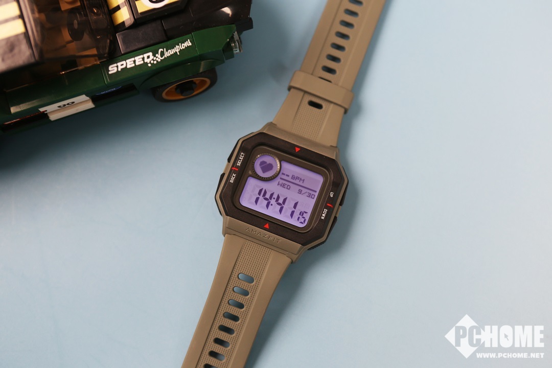 Amazfit Neo采用硬朗设计,方形屏幕搭配四颗实体按键,保持复古的同时也和流行不脱节,打造全新潮流风格,无论是户外使用,还是日常穿搭,充分彰显个性。此外,其还采用复古的黑白屏幕,更加节能的同时保证了强光下时间也能清晰显示。表带方面,其拥有坚硬的外壳和耐用的PUR表带,可做到50米深度防水。