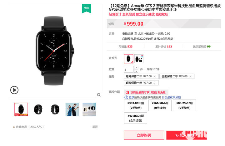如果你觉得动辄两三千元的智能手表存在溢价,价格1K以内的Amazfit GTS 2 智能手表无疑是你最为经济实惠的选择。目前,Amazfit GTS 2 智能手表已经正式在华米官网以及各大电商平台正式开售,三种配色均可购买,售价999元,并可选择1568元的手表耳机套装,同时购买Amazfit GTS 2 智能手表和Amazfit Powerbuds 无线耳机,均支持12期免息分期,晒单可返50元现金红包,更有意外保修2年、全面保修2年、延长保修1年等保障服务可供选择。喜欢Amazfit GTS 2 智能手表的朋友还请不要犹豫,赶紧上车吧!