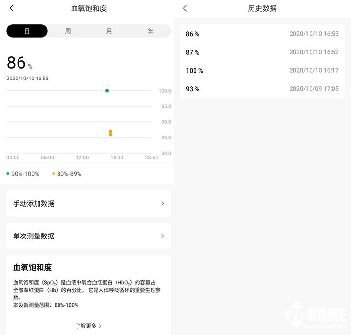 其中,血氧饱和度检测功能是全部健康功能的重中之重,用户可将手臂平放桌面,屏幕向上,保持静止,采集自己的血氧饱和度数据。结合OxygenBeats血氧引擎和SomnusCare睡眠引擎,用户可对睡眠呼吸质量进行检测。