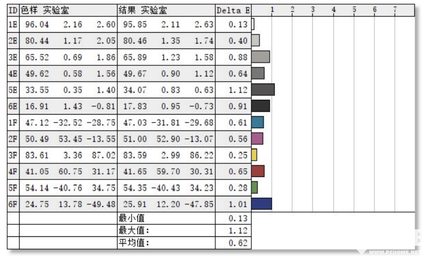 色彩准确性方面,实测这块屏幕的最大偏差值为1.12(5B灰黑色),最小值0.13(白色),平均偏差ΔE仅为0.62,已经是堪比专业级显示器的出色水准。