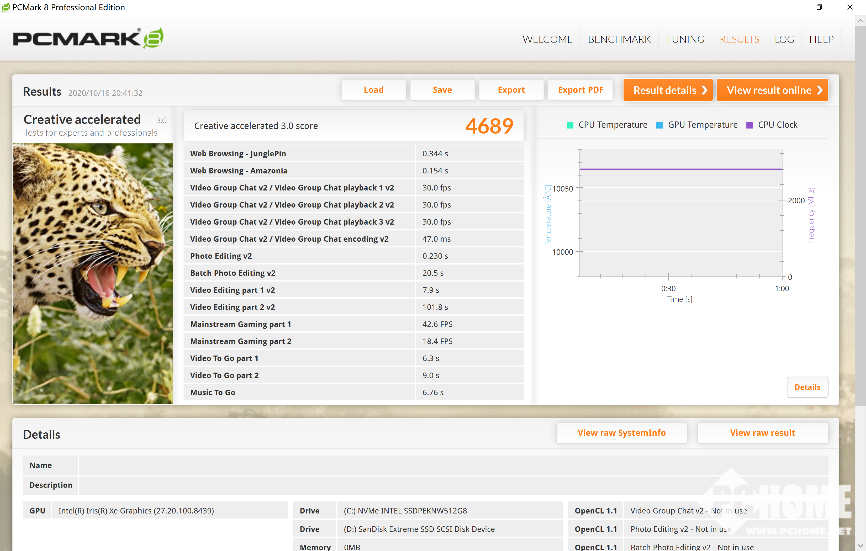 整机性能方面,华硕灵耀X纵横在PCMark8的Creative accelerate测试中,得分为4689,作为一款超轻薄的高阶商务笔记本,这样的性能表现可圈可点,可以从容应对用户日常使用中的各种需求。