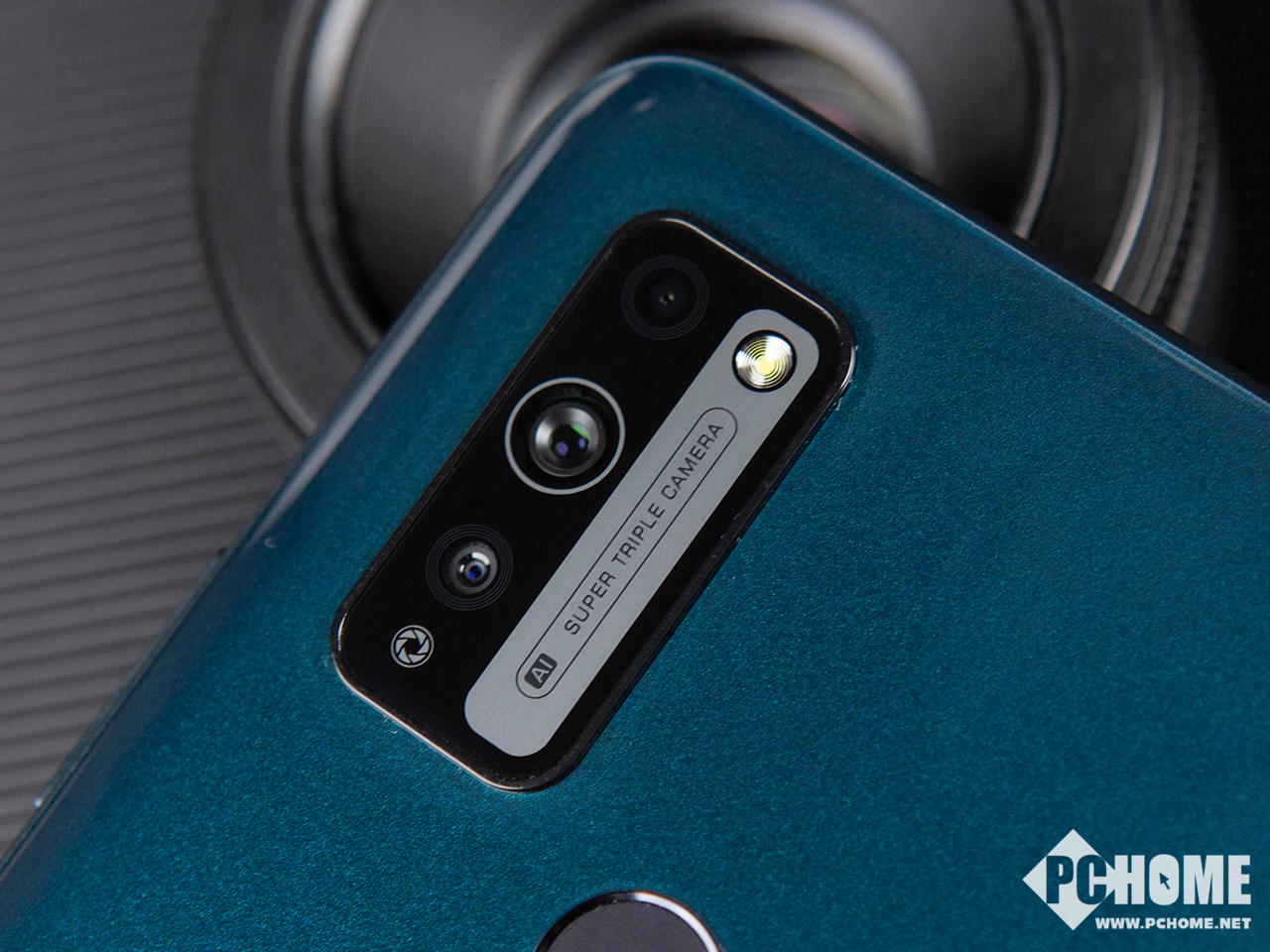 海信手机心意T50正面搭载了一块6.52英寸HD+高清水滴屏,音量键和电源键则位于机身右侧,机身背板上从上至下分别为后置三摄模组、后置指纹识别键以及海信5G手机的logo。