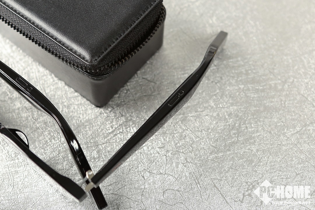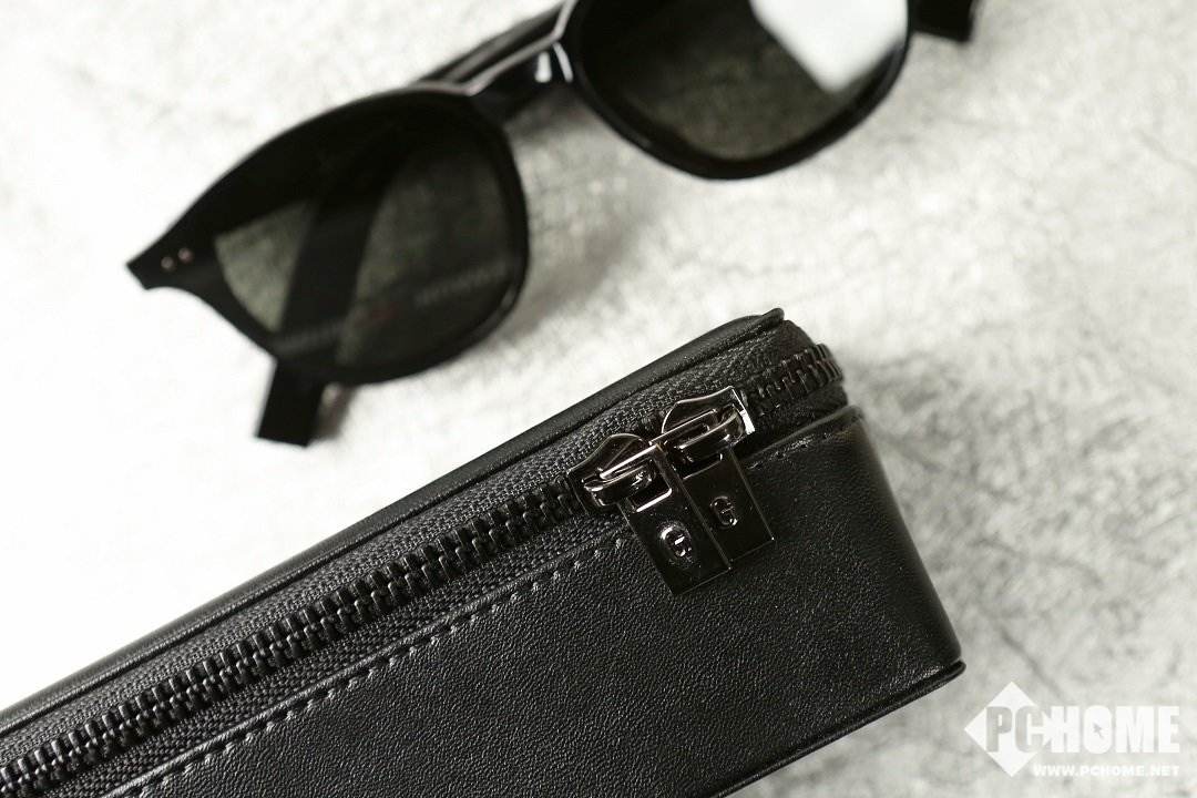 不仅是眼镜质感较好,Eyewear II全系的眼镜盒设计也很有质感。相比于圆润的眼镜盒设计,方方正正有棱有角的眼镜盒更让笔者喜欢,看上去更加精致。长方体形手包设计使其带出门更加便捷,体积小巧拿在手中不会突兀,整体黑色的设计也很耐看。在眼镜盒上盖内部有一层很厚的海绵,当眼镜盒不小心跌落时可以很好的保护眼镜,防止摔坏。同时镜盒还采用双拉链封口式设计,更加方便。