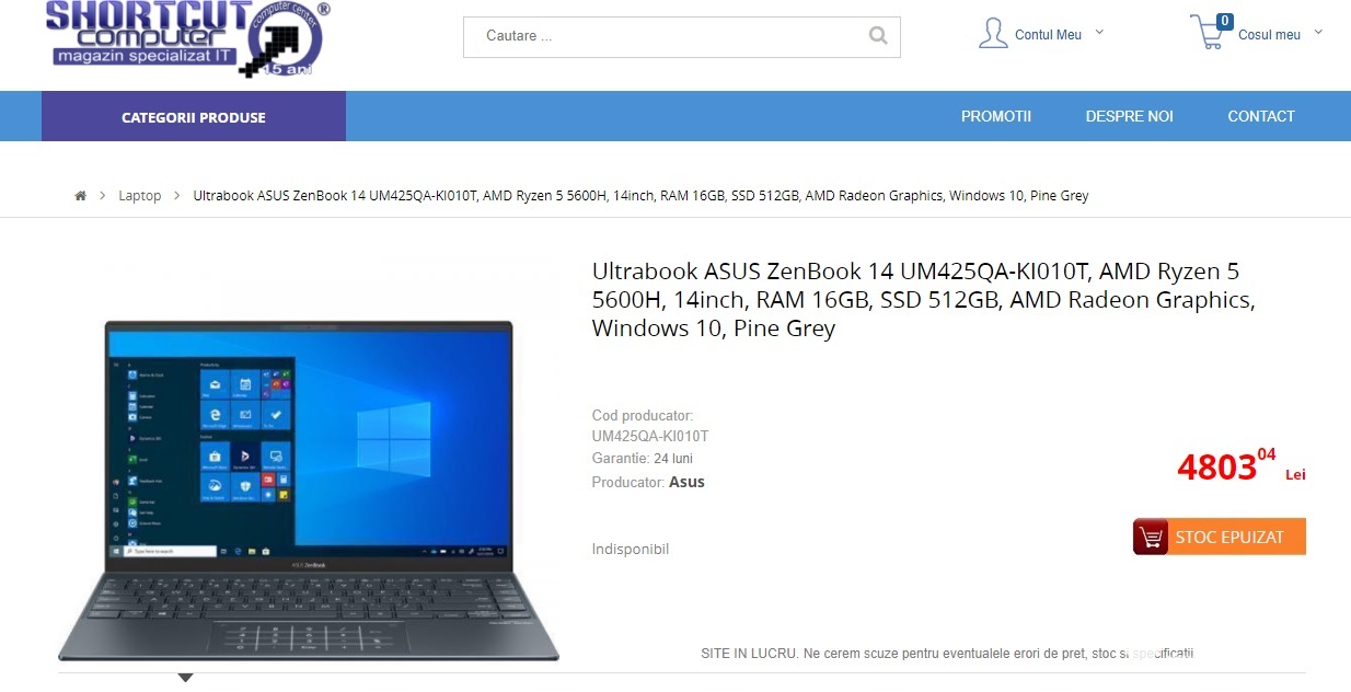 商品页面显示,这款笔记本的型号为 Ultrabook ASUS ZenBook 14 UM425QA-KI010T,搭载了 AMD R5 5600H,6 核 12 线程,主频 3GHz,睿频 4.1GHz,配备了板载 16GB 内存,电池为 67Wh。笔记本的尺寸为 319 x 210 x 14.3 mm,重量仅为 1.22 kg。