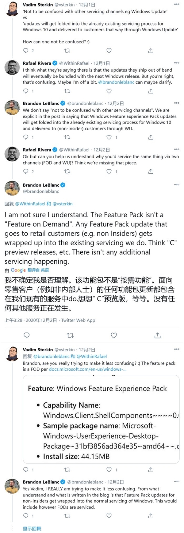 Windows Insider项目负责人Brandon LeBlanc指出,Windows 功能体验包更新将合并到Windows 10的现有服务中,并通过Windows Update交付给(非Windows Insider)用户。