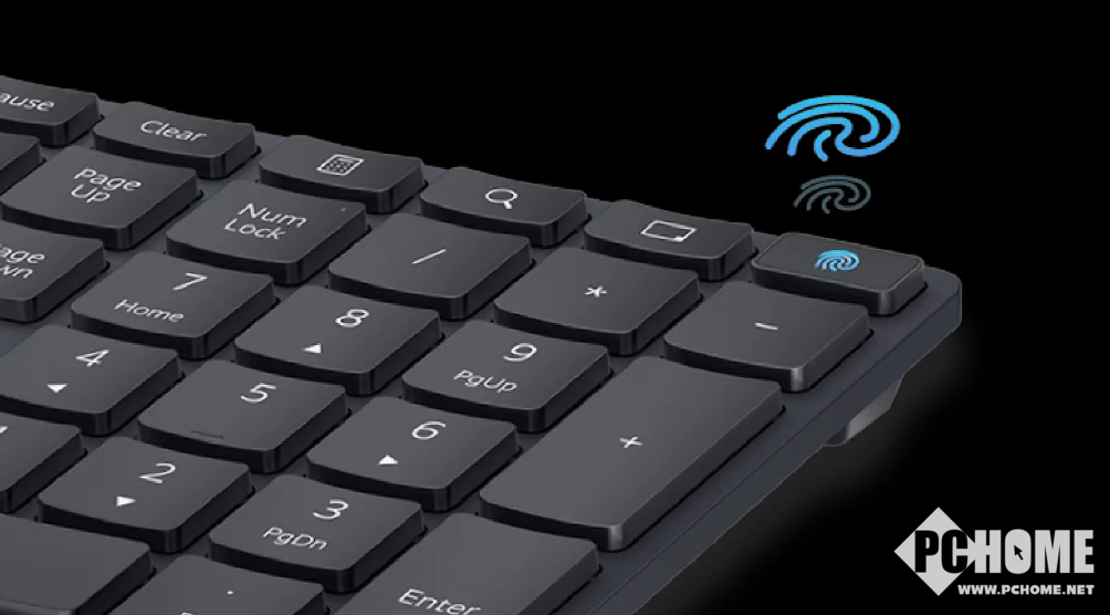 此外,在键盘的右上角还设计有一枚指纹开机键二合一键,开机更便捷的同时,也保证了安全性。键盘采用超薄设计,金属质感,2.5mm键程。