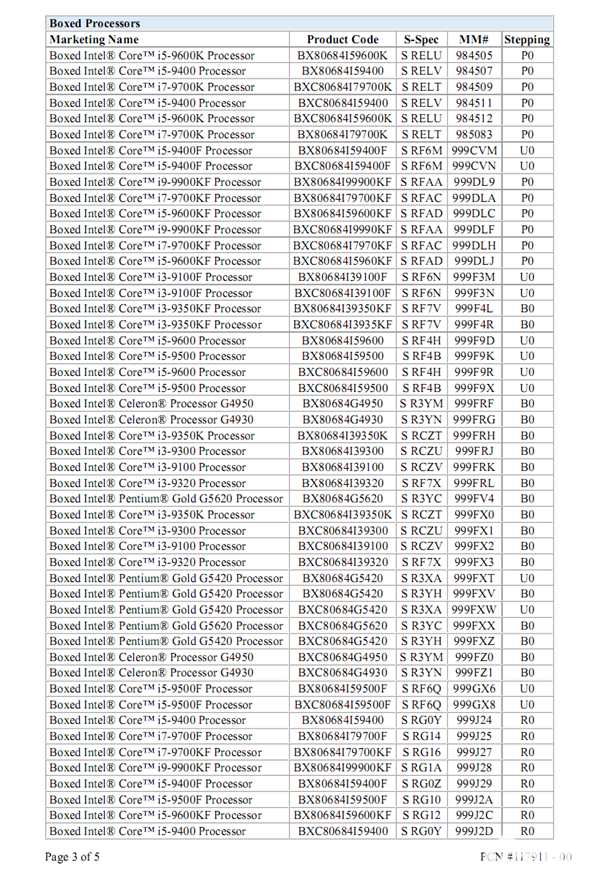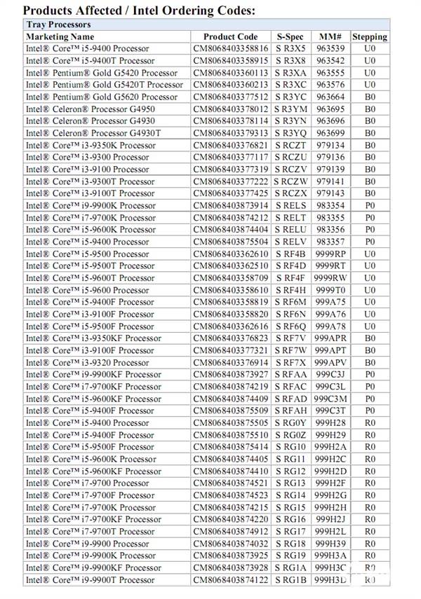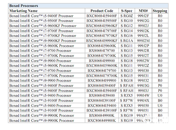 本次退役的是Intel 9代酷睿家族中的全部型号,包括i9 4款、i7 5款、i5 9款、i3 6款、奔腾3款、赛扬3款,i9-9900K、i5-9600F/9400F这样的爆款也全部离去。