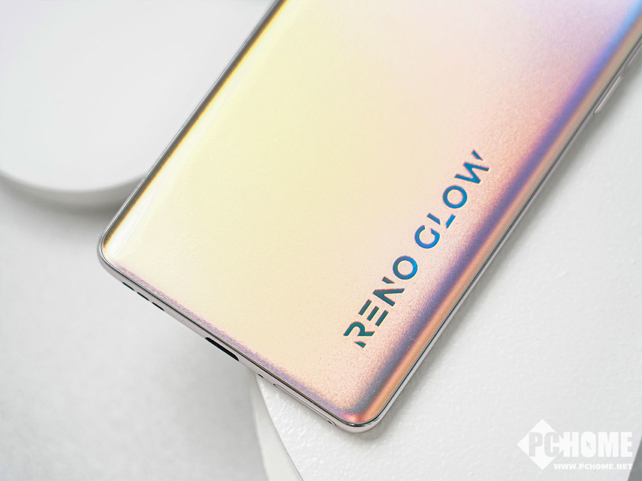星钻工艺则是OPPO Reno5 Pro的另一大亮点,不仅视觉更闪亮,颜色更通透,闪亮度也提升了35%,其结构由金字塔状的多面锥体构成。在透光性强大的同时,其优秀的疏水能力也能够有效防止水渍、指纹甚至油污沾染。OPPO Logo以及Reno Glow标识则在灯光照耀下熠熠生辉。