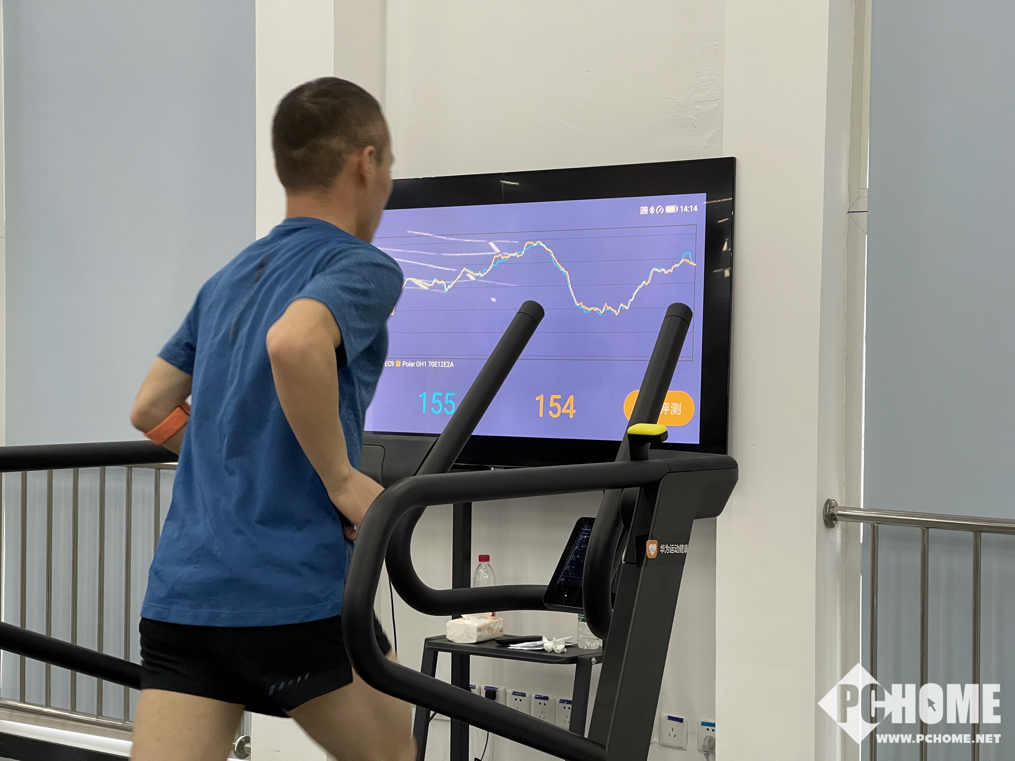 为了把佩戴华为手表和手环跑步变成一件科学而又简单的事,研究员们借助足底压力跑台、心肺功能代谢仪、心率带、专业大型跑台和光学动作姿态捕捉系统,组合搭建了一个复杂的跑步测试系统,用以搜集人的身体在跑步状态下的跑步姿态、最大摄氧量、心率和卡路里消耗等核心运动数据。