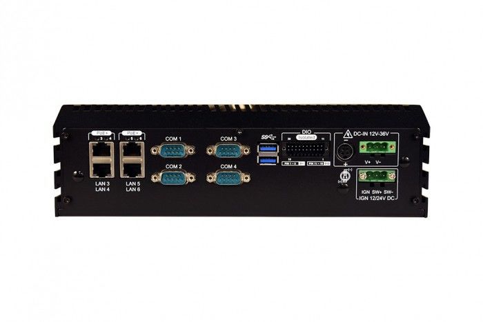 LPC-960强固型迷你电脑基础配置采用了英特尔赛扬G4900T处理器,该处理器拥有两核两线程,时钟速度为2.9GHz,系统内存为8GB DDR4,如果需要的话可以升级到64GB。这款内存还可以切换到使用ECC内存。LPC-960强固型迷你电脑在基本配置上有两个可移动硬盘的位置,第一个可移动硬盘插槽上安装的是256GB SSD 硬盘。这款迷你电脑拥有8个网络端口,其中4个是以太网口,2个SFP端口和2个标准网络端口。如此多的连接端口使这款迷你电脑能够完美地应用于专业应用。